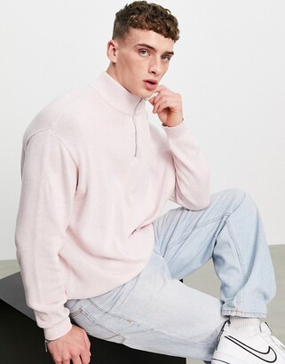 Asos Design Midweight Oversized Half Zip Sweater In Pink Shopstyle